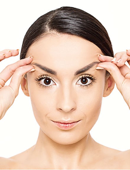 1. Закрывай глаза. Пальцами удерживай кожу надбровных дуг, оказывая сопротивление закрывающим глаза мышцам.