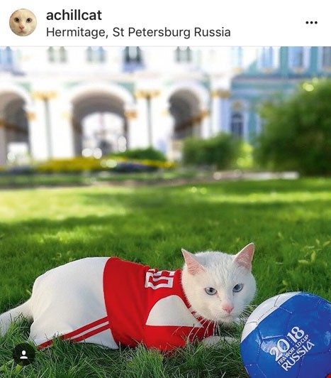 Знакомьтесь, кот Ахилл! Работает он в знаменитом музее «Эрмитаж» мышиным сторожем. Очень любит футбол и умеет предсказывать исход матчей. Хочешь проверить точность прогнозов? Подписывайся на аккаунт Ахилла.