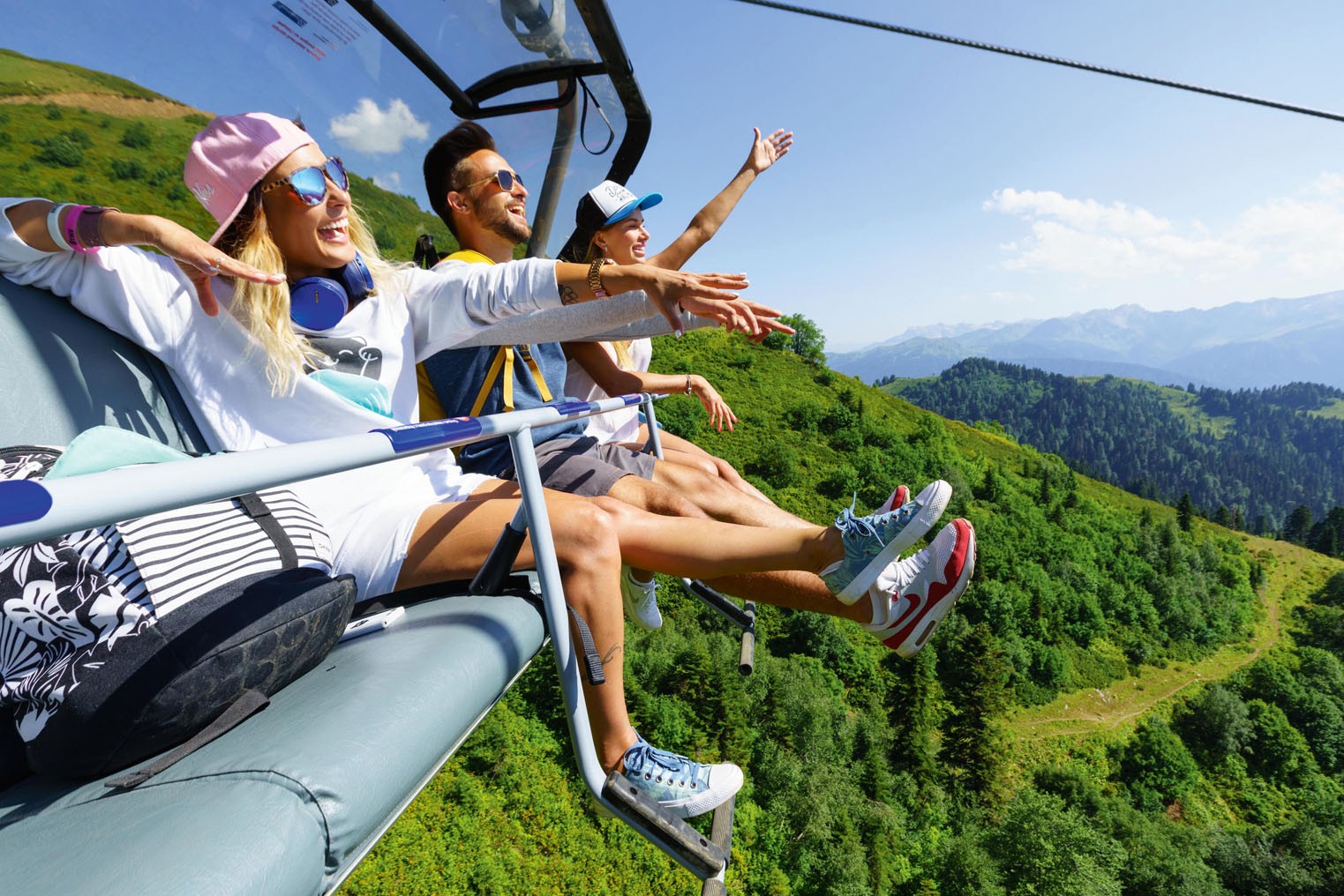 Когда хочется все и сразу – и в море искупаться, и по горам полазить – берите билет до Сочи. Здесь на курорте «Роза Хутор» для таких максималистов разработали специальную программу летнего отдыха «Горы развлечений». Сюда входит: проживание, прогулочные билеты на канатные дороги (можешь подняться на высоту 2330 метров!), посещение парка водопадов, занятия йогой, прохождение маршрутов в веревочном парке приключений и многое другое. Разумеется, основная геолокация для этих развлечений – знаменитая Красная поляна. А приятным бонусом идет бесплатный трансфер до черноморского пляжа с лежаками и полотенцами.