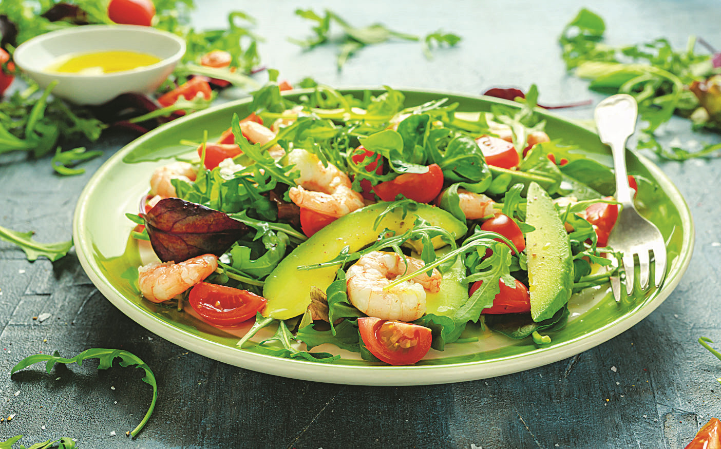- Салат с креветками. Смешать 2 чашки любой зелени с 10 креветками, приготовленными на гриле, 1 чашкой нарезанных овощей (отварные брокколи, цукини, морковь). Заправить 2 ст. л. оливкового масла. Подавать с консервированной кукурузой, 2 ломтиками твердого сыра.