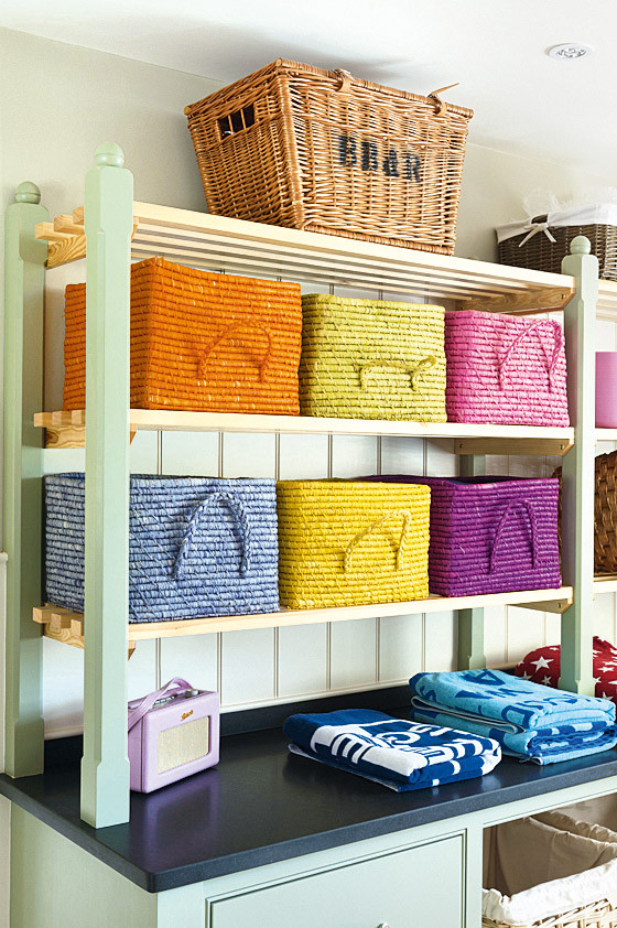 Помимо традиционных плечиков, наполни гардеробную или шкаф-купе всевозможными дополнительными приспособлениями – органайзерами для хранения белья, ремней, галстуков и платков, а также легкими корзинами из натуральной или искусственной соломки. Это поможет быстро найти нужную вещь или при необходимости без труда переместить целые группы сезонной одежды.