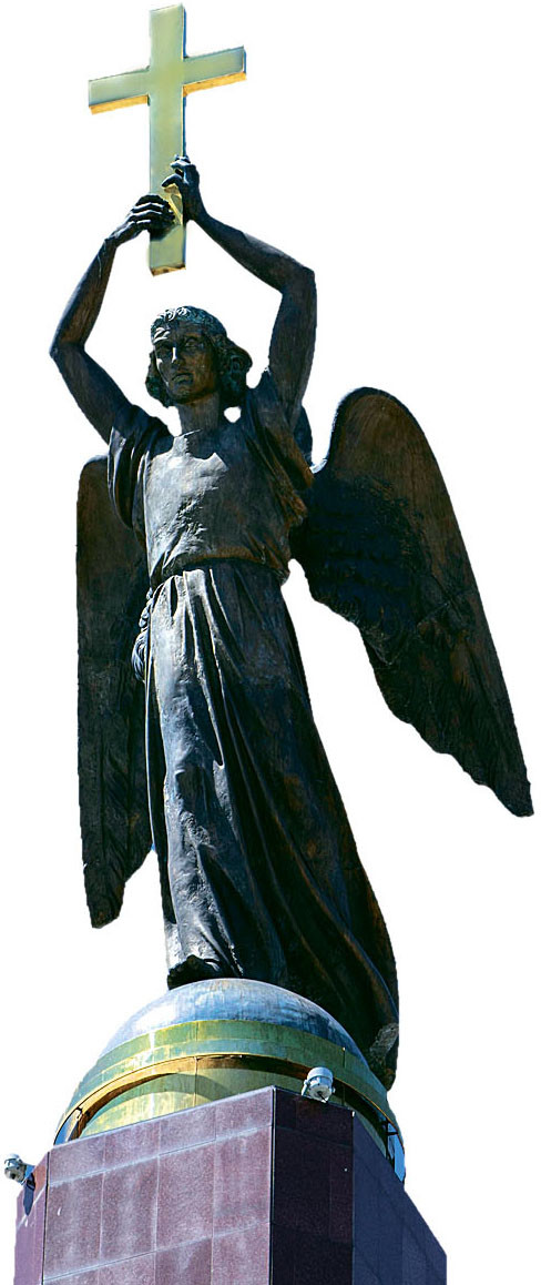 Перемещаемся на Александровскую площадь. Ее самая выдающаяся деталь – монумент Ангел-хранитель. Кстати, установили его совсем недавно, в 2002 году, в честь 225-летия со дня основания Ставрополя. В руках, над головой ангел держит крест, и это неспроста. С греческого «ставрос» переводится как «крест». Впрочем, исследователи до сих пор так и не сошлись во мнении, какой именно крест дал название городу. По одной версии, это случилось из-за того, что при строительстве, градообразующая крепость имела в своей основе две перпендикулярные оси, которые напоминали собой крест. По другой, закладывая фундамент крепости, строители выкопали большой каменный крест. А третья версия основывается на том, что на одной из карт место, где должны были начинать строительство, было обозначено не точкой, а крестиком.
