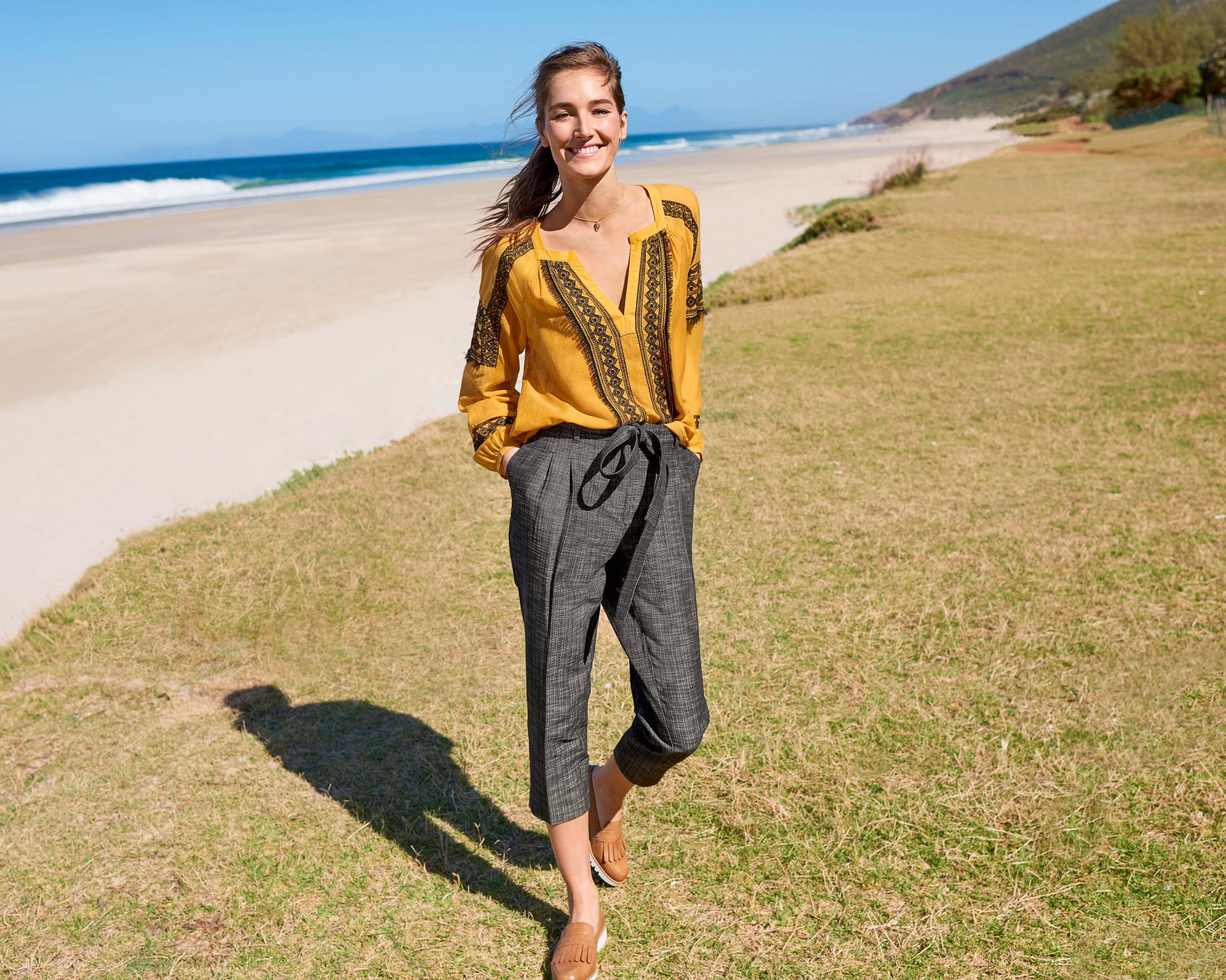 Завышенная линия талии – неотъемлемая деталь современного элегантного образа. Примеряй классические, спортивные, клеш и любые другие модели брюк с высокой посадкой.