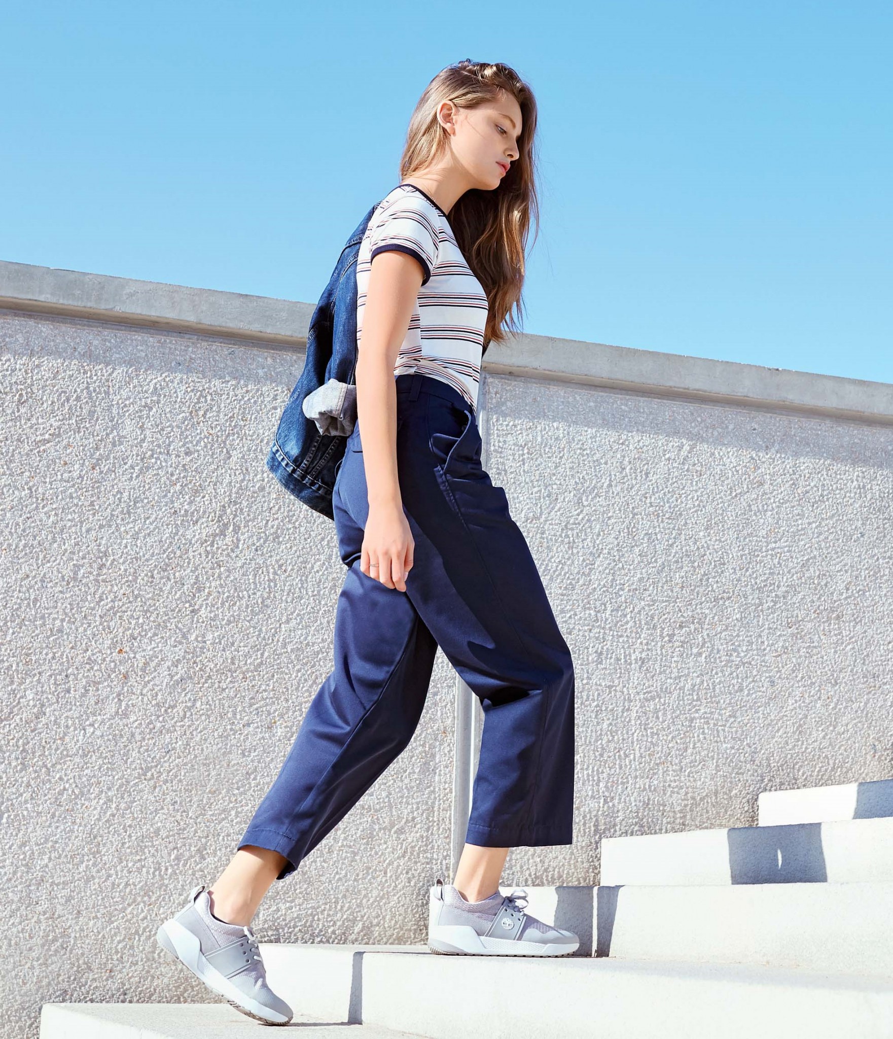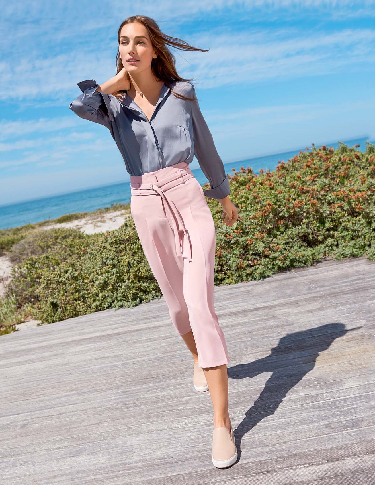 Брюки длиной до середины голени не только удобны, но и эффектно дополнят повседневный, деловой и даже спортивный образы. Стильные брюки-капри могут быть любой цветовой гаммы, фактуры и кроя. Обрати внимание и на модели из актуальной джинсы. Носить такие брюки можно с обувью на высоком каблуке и на плоской подошве: ботинками, лоферами, мокасинами и, конечно, кедами.