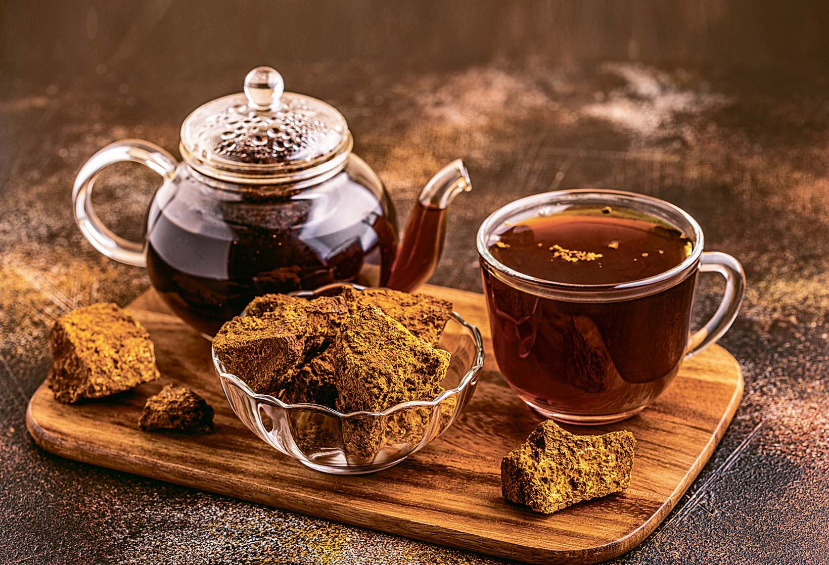 Особенно это актуально сейчас, в пик ОРВИ и гриппа. Залей мелко измельченный гриб теплой водой, дай настояться полчаса. Его можно пить вместо чая, а еще добавлять порошок чаги в кофе (получится очень необычный оттенок вкуса) и даже смузи.
