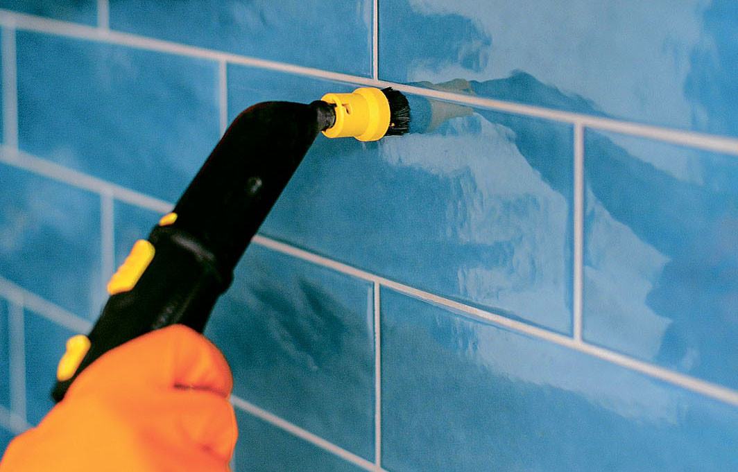Чистить паром можно практически любую плитку. Проще всего делать это насадкой-соплом. Ее направляют на очищаемую поверхность, затем вытирают салфеткой размягченные загрязнения. В запущенных случаях используют мягкую или даже жесткую щетку. Аналогично очищают и межплиточные швы.