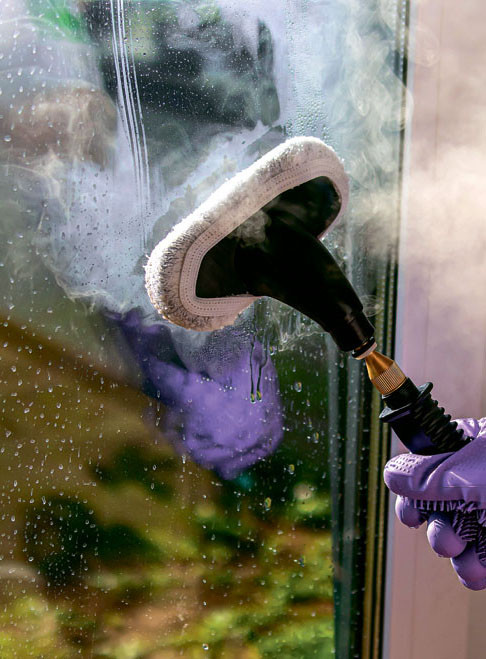 Пароочиститель хорошо отмывает стеклянные поверхности – зеркала, окна. Важно помнить: паровая струя – очень горячая, поэтому не стоит мыть оконные стекла зимой. Иначе они потрескаются от перепада температур. В комплекте, как правило, есть насадка с пластиковым сгоном для мытья гладких поверхностей. Ее устанавливают на паровой шланг. Начинают мыть от верхнего края окна. Прижимают насадку к стеклу, включают подачу пара и с небольшим усилием ведут вниз. Паровая струя чистит стекло, резина собирает размягченные загрязнения.