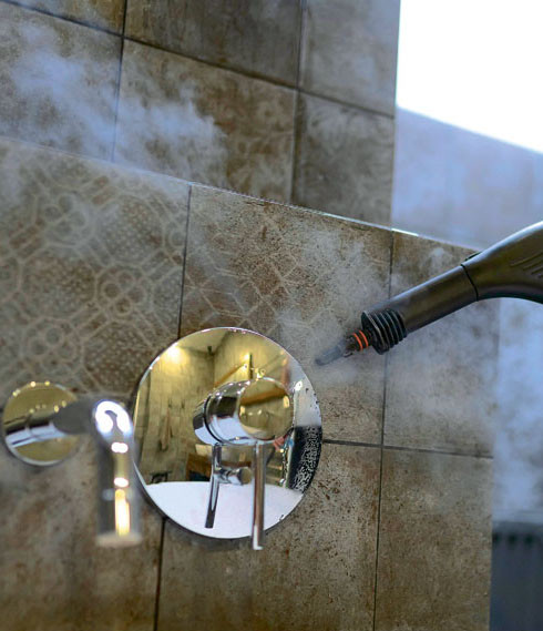 Пар размягчает известковые отложения в душевой кабине. Он эффективно очищает сантехнику от налета и ржавчины. Для чистки выбирают подходящие насадки – сопло, щетку или плоскую тканевую. В сложных случаях возможно воздействие химикатами для растворения налета. Правда, некоторые виды сантехнической керамики не переносят перепадов температуры, на них может потрескаться глазурь. Это нужно уточнить перед обработкой.