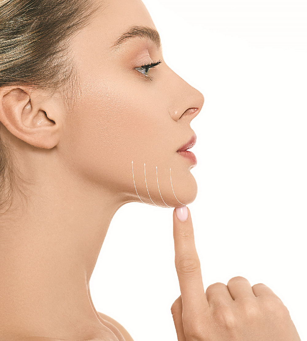 Большим, указательным и средним пальцами разомни кожу под подбородком массирующими движениями, похожими на мелкие щипки. Пройди по всей области, где образуется второй подбородок.