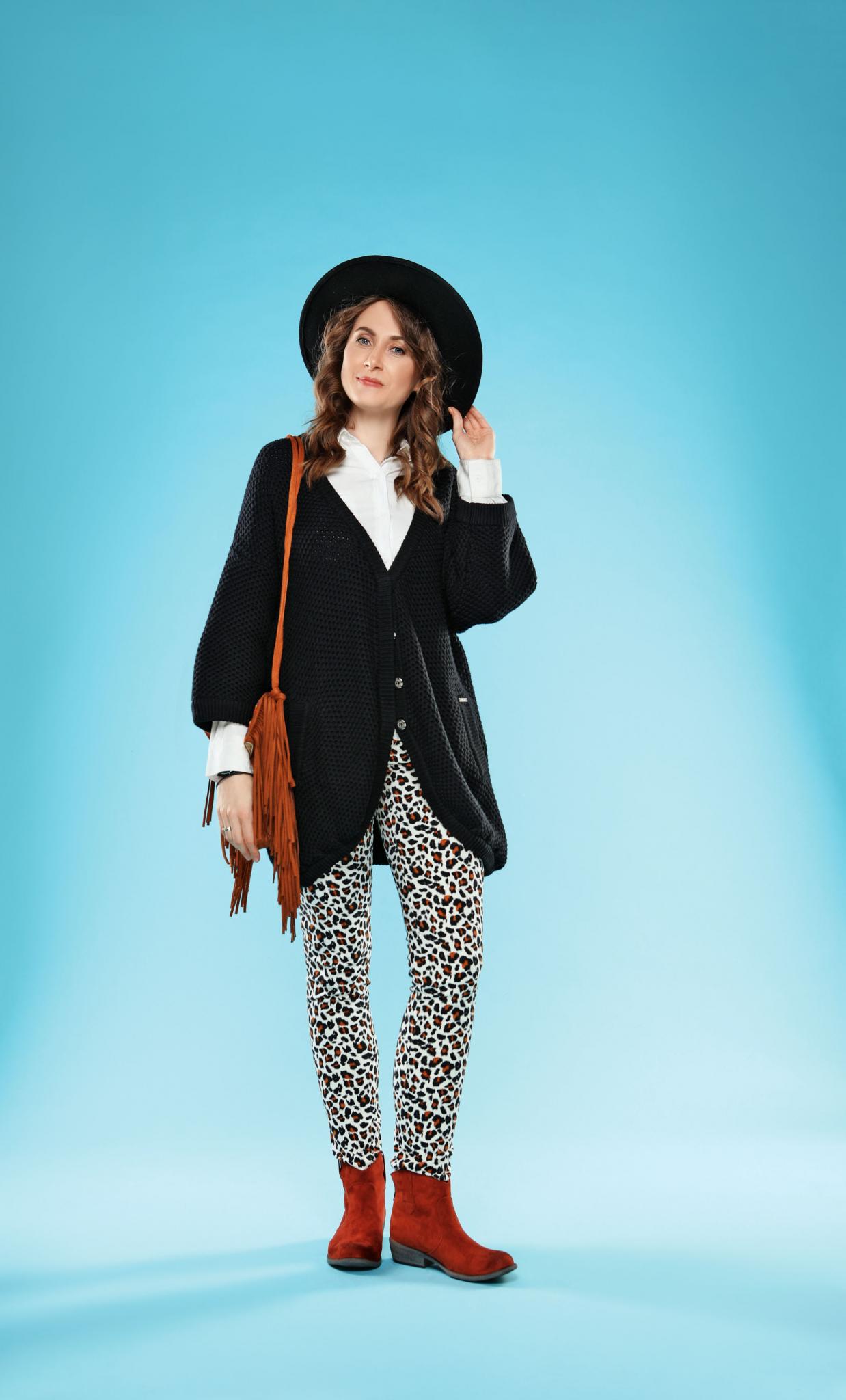 Достаточно одной яркой вещи, чтобы образ получился эффектным. Например, вот таких зауженных брюк с леопардовым принтом. Обрати внимание, что остальные вещи в образе должны быть простыми, однотонными и лучше свободного кроя. Хочется чего-то более смелого? Дополни образ аксессуарами в стиле бохо.