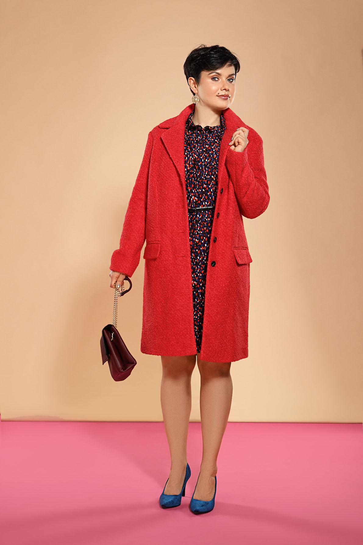 Лучший способ поднять настроение – примерить алое пальто и женственное платье-рубашку. А интересной деталью станут бархатные туфли!