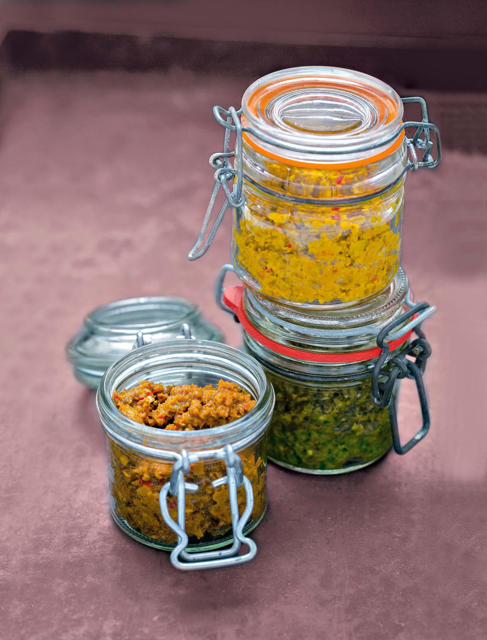 Лук, перец и чеснок мелко порубить. Корень имбиря натереть. Лемонграсс измельчить. Подготовленные ингредиенты соединить с тмином и кориандром, маслом и соевым соусом. Посолить и перемешать. Хранить в холодильнике 6 дней.