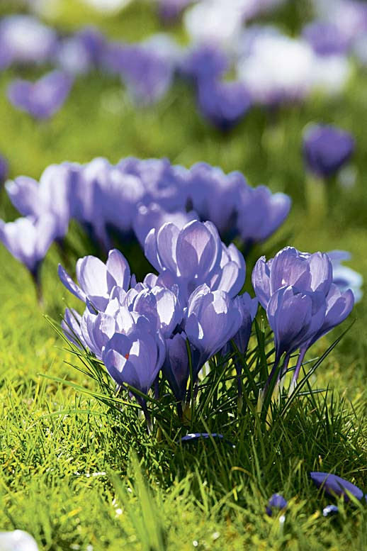 1. Крокусы. Растения небольшие – 10–15 см, цветут с марта по май. Они появляются из-под снега в числе первых и после цветения уходят на покой. Луковицы сажают в начале осени, для них подходит полутень. Крокусы хорошо смотрятся под кронами деревьев и кустарников в саду, на клумбах, альпийских горках.