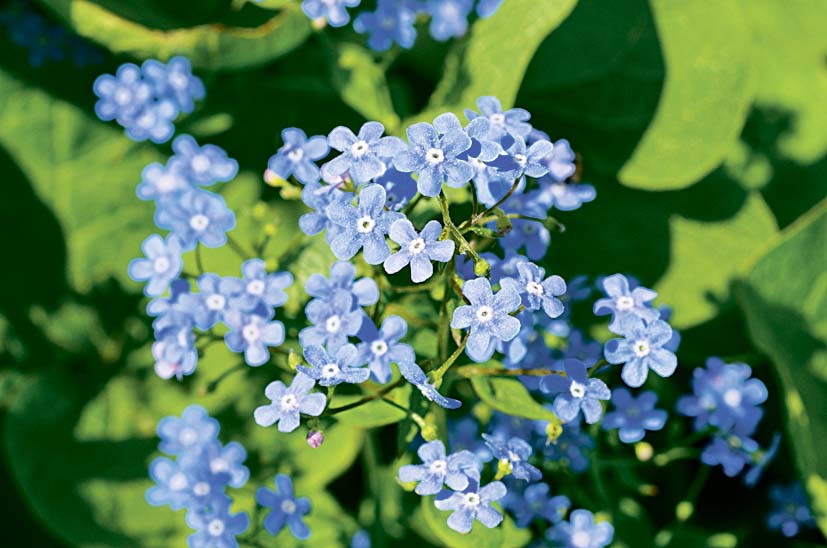 4. Бруннера. В мае наступает очередь эффектной бруннеры. Ее часто высаживают вдоль садовых дорожек или возле водоемов. Растение невысокое – 30–50 см. Отличается декоративной листвой в форме сердца с заостренными краями. Любит тенистые и влажные места. Размножается делением куртины. Бруннера быстро разрастается и долгое время обходится без пересадки.