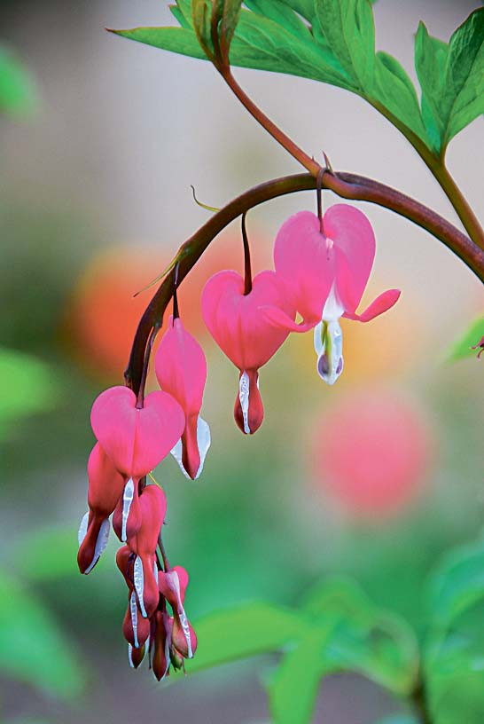 3. Дицентра. Часто называют «разбитым сердцем» из-за необычной формы цветов. Несмотря на грустное название, она без потерь переживает зимние морозы, а с приходом тепла появляется над поверхностью земли. В зависимости от сорта высота колеблется от 30 см до 1 м. Цветение продолжается в течение месяца. В тени цветы более яркие, чем на солнцепеке.
