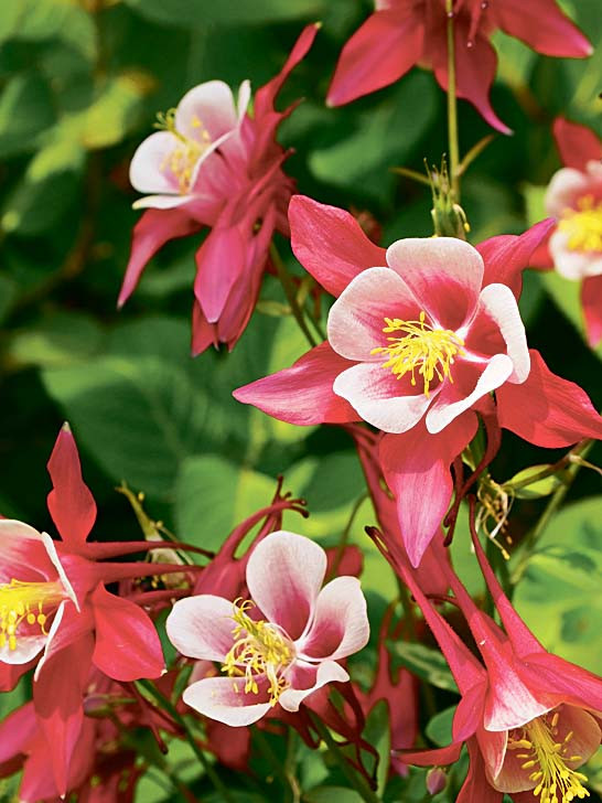 1. Аквилегия. В конце мая – начале июня начинает набирать силу водосбор. Колокольчики распускаются на прямостоячих цветоносах, могут достигать 80 см в высоту. Аквилегия цветет до сентября, к осени листья становятся пурпурного оттенка. Если влаги не хватает, растение находит ее глубоко в почве благодаря мощным корням. Цветы появляются лишь на второй год жизни. Может размножаться самосевом, но гибридные сорта не сохраняют свои свойства.