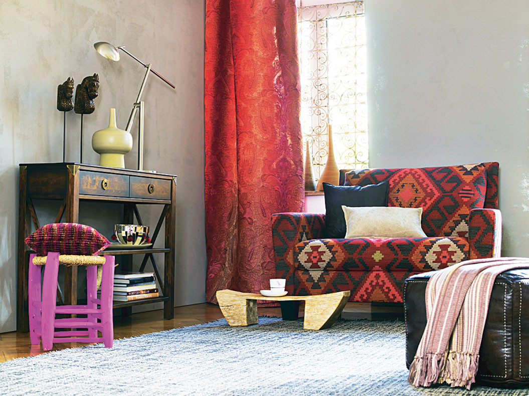 Льняное постельное белье, выжженный на солнце килим, стены цвета сумеречного неба, потертое дерево и металл ржавого оттенка – все эти элементы в стиле марокканской пустыни также на пике популярности. Выбирай оттенки терракота, грязно-розовый и серо-синий. Старайся выдержать расслабленную атмосферу в каждой детали. Собирать артефакты предлагаем в путешествиях, заполняя дом атмосферой приключений и дальних стран.