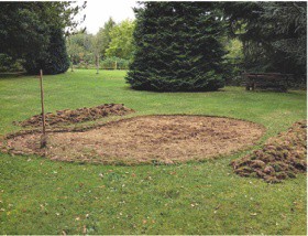Прежде чем копать яму, установи емкость на выбранное место. Проследи, чтобы она не наклонялась, положи ее на кирпичи, нарисуй на земле очертания. Чаши выпускают с ровным дном или с террасами (как правило, 3–4 яруса). Зоны смены высот надо отметить на земле.