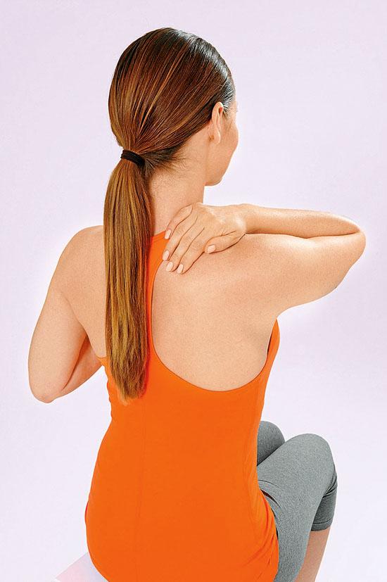Положи правую ладонь на верхушку левой лопатки на 5–10 минут, а затем выполни зеркальное действие левой ладонью.
