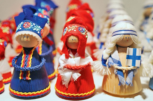 Куколки в традиционных нарядах, теплая одежда со скандинавскими мотивами, кружки с муми-троллями, лакрица.