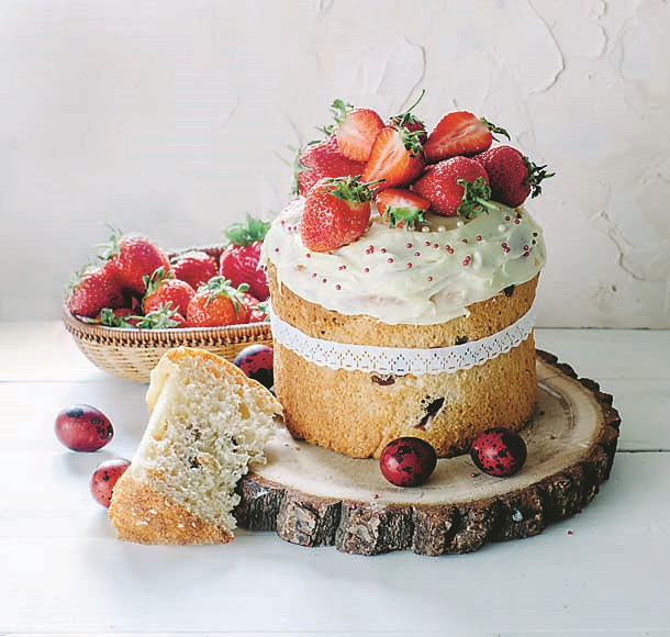 ИНГРЕДИЕНТЫ: Для теста: 200 г сливочного масла, 5 яиц, 2 желтка, 1,5–2 стакана сахара, 1 пакетик ванильного сахара, 40 г свежих дрожжей, 2,5 стакана молока, ¾ ч. л. соли, 200 г цукатов, 50 г кураги, 2 ч. л. шафрана, 200 г изюма, сок 1/3 лимона, 4 стакана муки. Для глазури: 400 г сахара, 2 яичных белка, сок 1/4 лимона, свекольный сок.