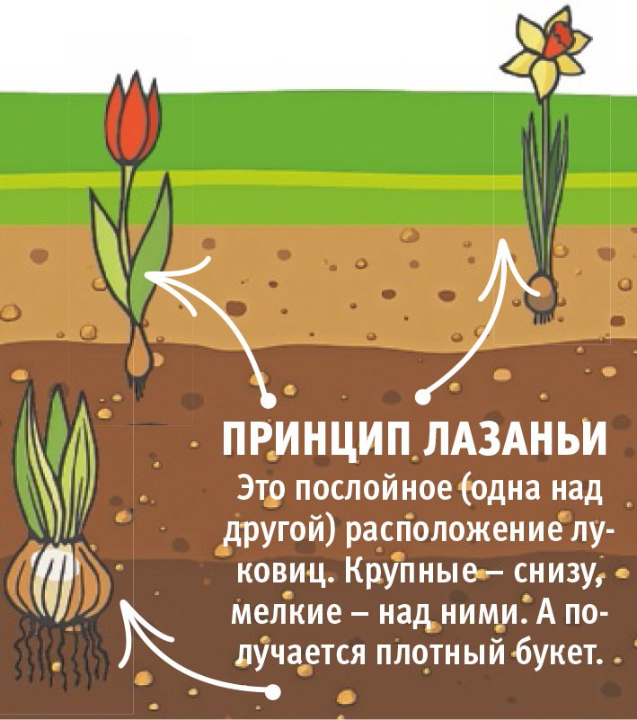 Помогает сохранить посадки на месте. Довольно часто бывает, что после зимы луковицы «разбегаются» по клумбе, заглубляясь в землю и прорастая там, где это было совсем не запланировано.