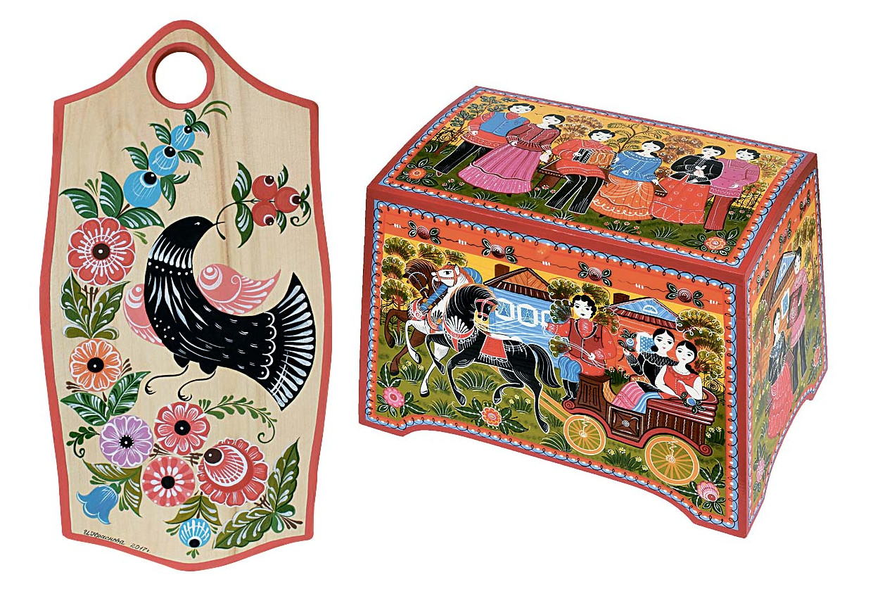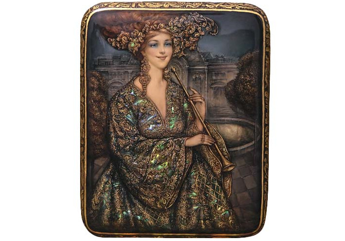 Художники из подмосковного села Федоскино создают картины в миниатюре – расписывают кулоны и броши, шкатулки и ларцы. В отличие от мастеров из Палеха, здешние художники работают масляными красками, а не темперой, и сюжеты у них более реалистичные.