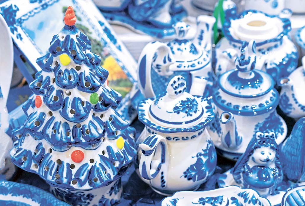 Сине-белый орнамент – визитная карточка Гжели. Ради тонкого фарфора и керамики с оригинальной росписью в этот небольшой подмосковный городок и приезжают туристы. Гжельский промысел известен с XIV века, и всю его историю можно проследить в местном музее. Здесь собрано примерно 2000 экспонатов: есть и ценные экземпляры XV века, и уникальные работы современных мастеров.