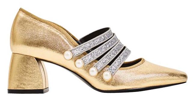 Платье выбирай лаконичного кроя. Сделать дополнительный акцент на талии можно с помощью пояска со стразами. Также к золотому платью хорошо подойдет небольшая сумочка на ремешке из кожи или ткани нейтрального оттенка. А вот обувь можно выбрать контрастного цвета, например, голубые туфли будут гармонично сочетаться с золотом.