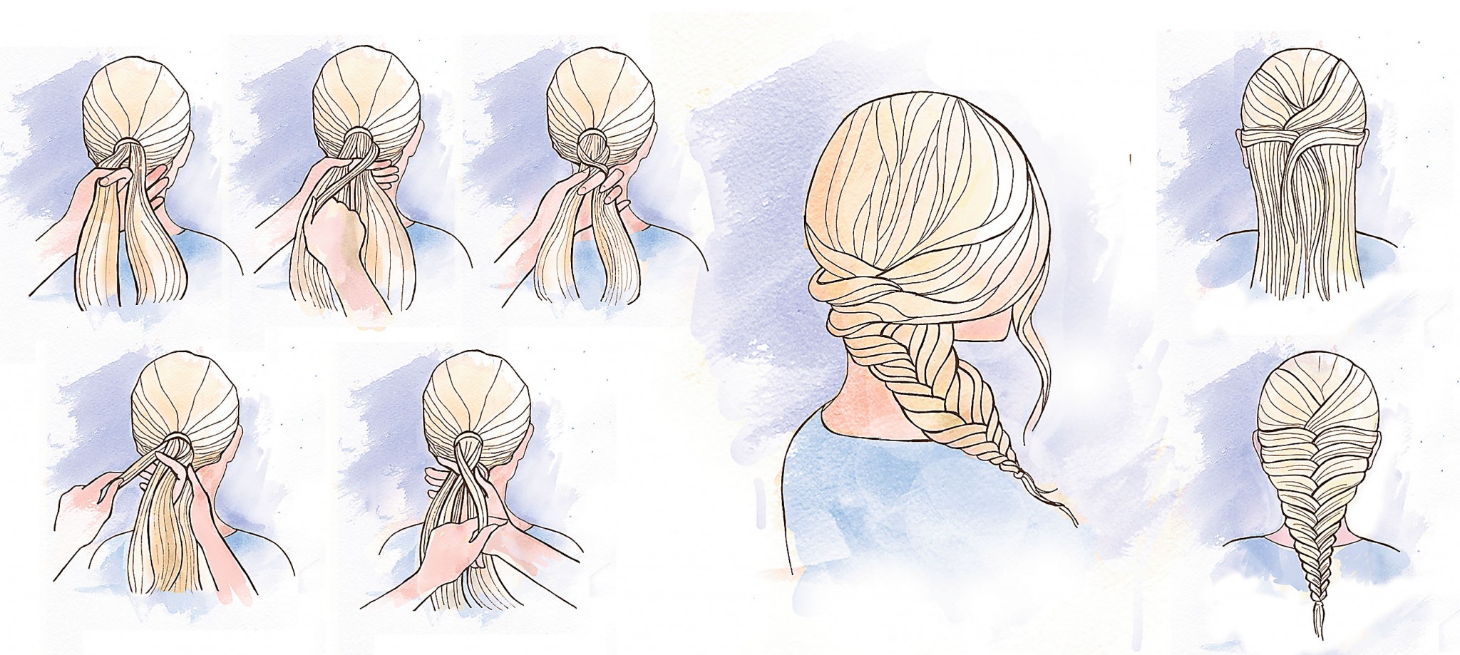 - По мере плетения пряди будут перекрещиваться в центре и, когда ты дойдешь до конца, получится «рыбий хвост».