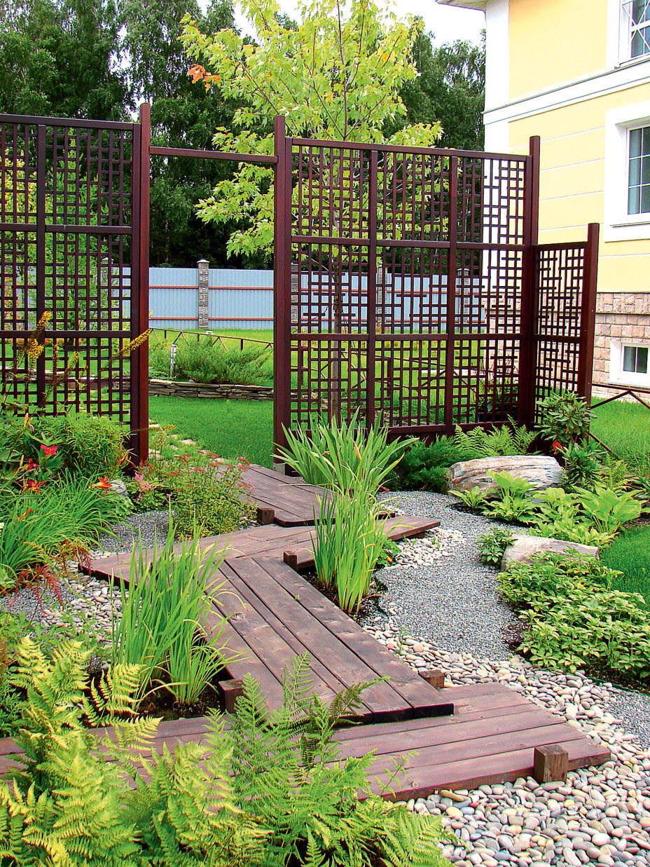 4. Тропинкам и дорожкам из дерева требуется особый уход – периодическая обработка защитными составами (антисептиком и маслом), замена сгнивших лаг.