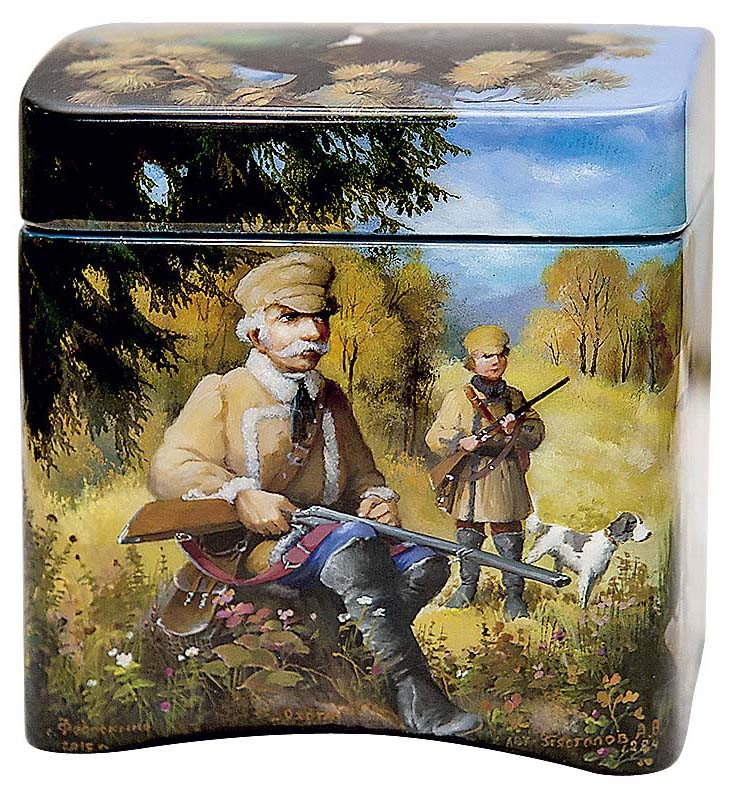 Задача стояла непростая – на крышечке миниатюрной шкатулки нарисовать целую картину. Темы брали из жизни, то есть «что вижу, то пою»: цветы, крестьянский быт (хороводы и тройки), пейзажи... Но больше всего ценились изделия, на которых были копии картин русских и западноевропейских художников. Полноценное живописное полотно в то время не все могли купить, а вот лакированный ларец был вполне доступен по цене.