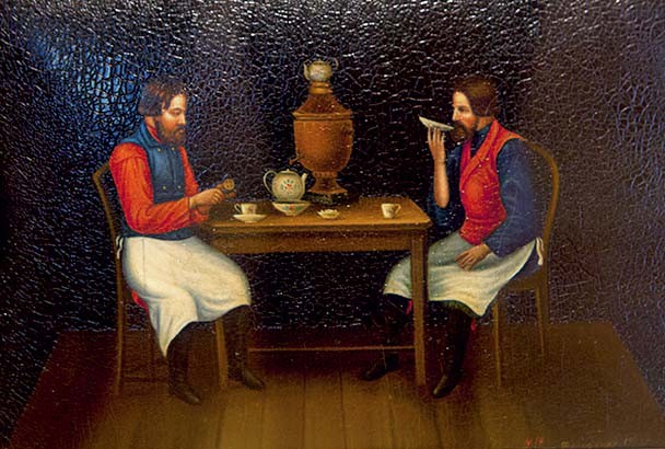 Идеи художники находили повсюду: рисовали местных красавиц или листали популярный тогда журнал «Нива» и фотографии из него переносили на крышки шкатулок. Так появился один из самых популярных федоскинских сюжетов – чаепитие.