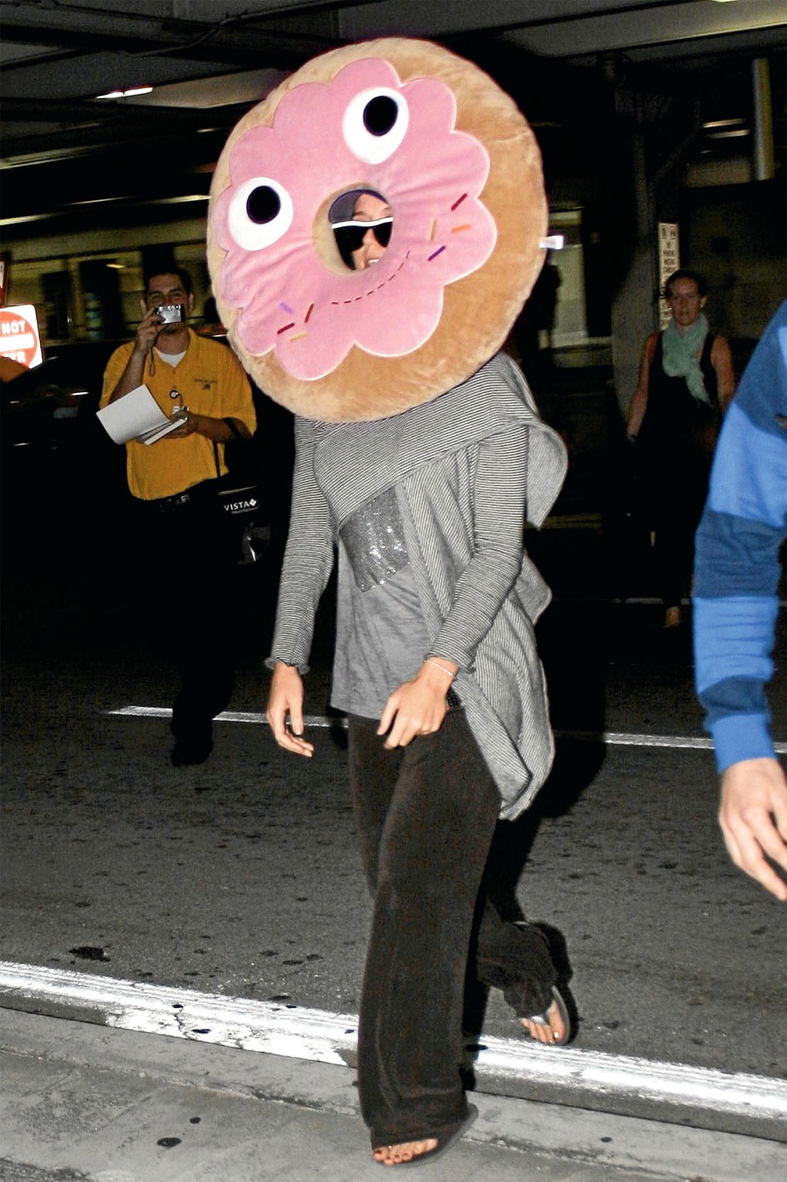 Примерить маску в виде сдобной выпечки? Почему бы и нет! Эта звезда явно руководствовалась этой идеей, когда решила спрятать лицо за плюшевой игрушкой в виде огромного пончика. Может быть, кулинарные пристрастия подскажут личность сладкоежки? В любом случае спектакль вышел забавным.
