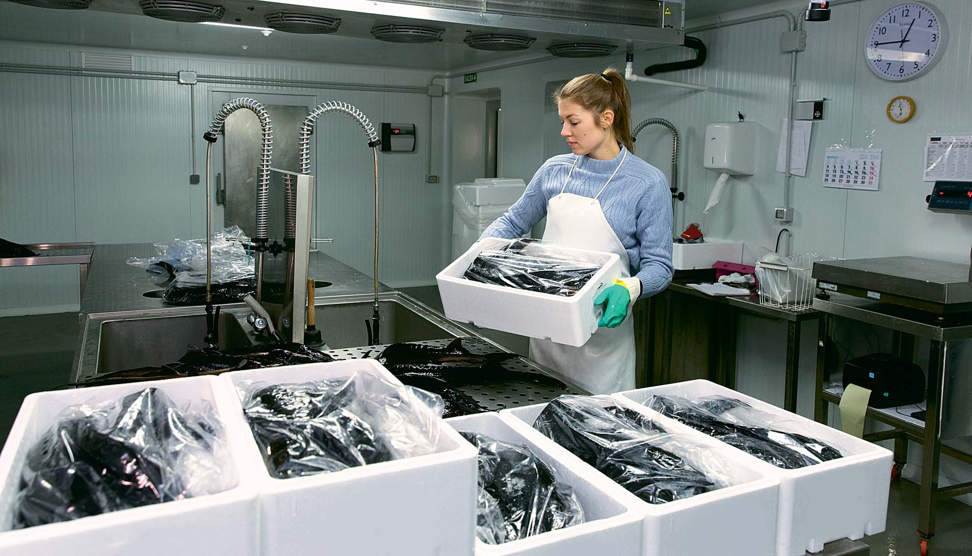 Впрочем, есть и береговая обработка рыбы и морепродуктов – когда улов привозят маленькими судами к заводу, который стоит на берегу. Часто это сезонная работа. Например, когда лосось идет массово и траулеры попросту не успевают его обрабатывать прямо на борту.