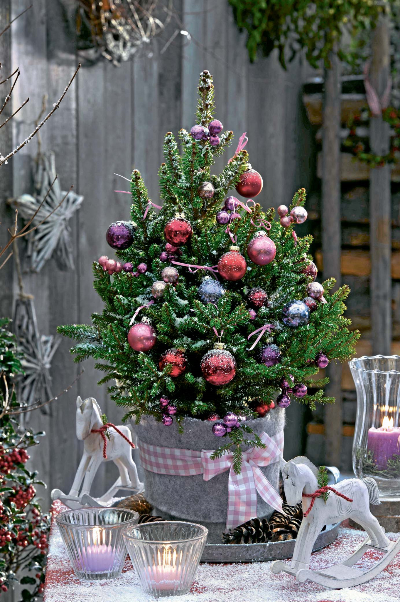 Карликовая елочка в утепленном валяном шерстью горшке – отличный настольный декор. Но игрушки тоже должны быть «карликовыми».