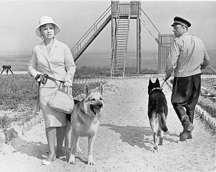 Еще одной «покусанной» была актриса Алла Ларионова, сыгравшая в фильме бывшую хозяйку Мухтара, которая продала его в питомник. Ларионова наотрез отказалась от дублера и решила сниматься сама. Правда, ей в партнеры, в отличие от Дурова, достался более спокойный Дейк. Но хозяин собаки все-равно нервничал и оттаскивал пса до того, как давали команду «Снято». Потребовалось много дублей, чтобы эта сцена получилась.