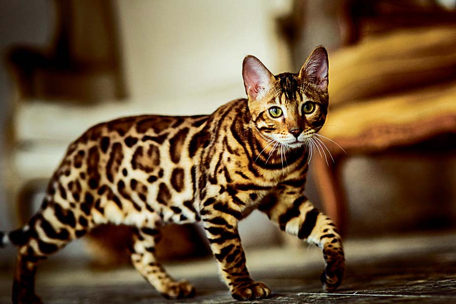 Отзывчивые и преданные кошки легко находят общий язык с людьми и другими питомцами. Положительно относятся к ласке, но только при продолжительном отсутствии. Не подходят семьям с маленькими детьми – шум очень нервирует бенгалов.