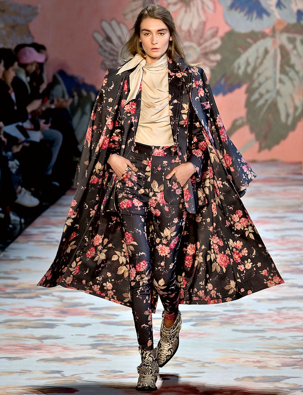 Этой осенью в центре внимания флористический принт средних размеров и глубокая палитра оттенков: темно-синий, бордовый, изумрудный, черный. Сочетай цветочные наряды с базовыми вещами и грубой обувью.