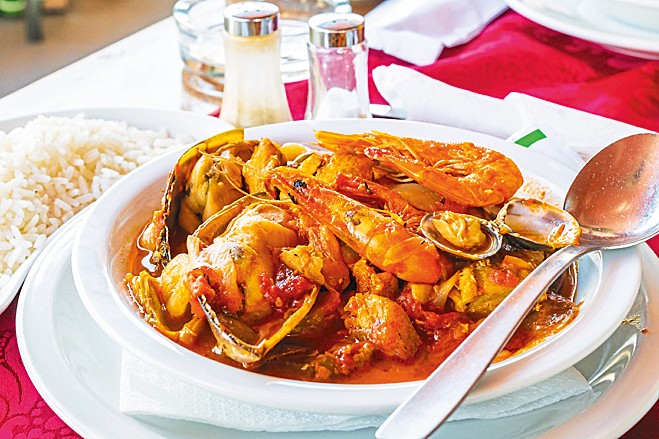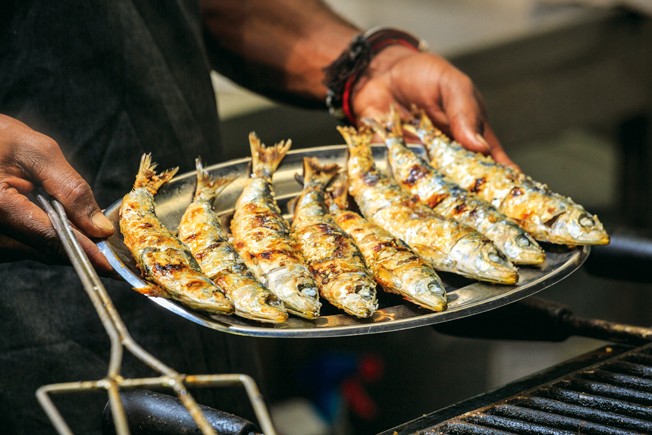Выбирать второе можно наугад – даже из постной трески португальский шеф-повар приготовит деликатес. Чуть тронешь рыбу вилкой, и из тушки на тарелку заструится сок. Почетное место в сердце и рыбном меню португальцев также отводится сардинам на гриле, а еще катаплане. Под мелодичным названием скрывается рагу с рыбой, морепродуктами, картофелем и овощами. Готовится оно в медной сковородке с крышкой, которая как раз и называется «катаплана».
