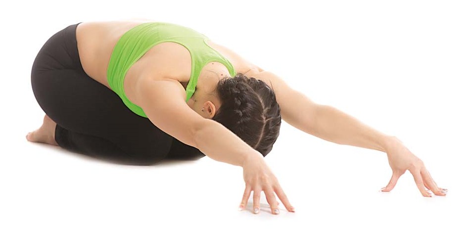 Асана плавно растягивает позвоночник и расслабляет все тело.