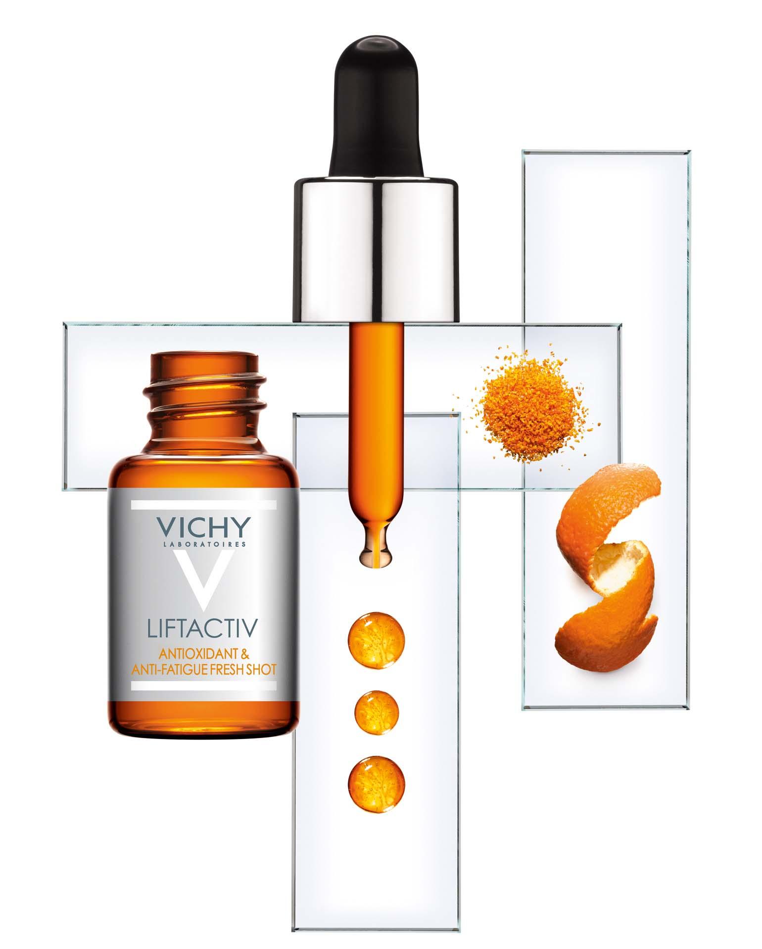 Результатом научных исследований стало создание антиоксидантного концентрата молодости Liftactiv с содержанием 15% чистого витамина С. Такая концентрация L-аскорбиновой кислоты предупреждает образование свободных радикалов, вызывающих преждевременное старение кожи. Помимо этого в состав концентрата входят гиалуроновая кислота, нео гесперидин, полифенол сосны приморской и минерализующая термальная вода VICHY, преображающие кожу и позволяющие в период нервных перегрузов выглядеть отдохнувшей.