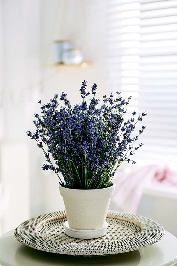 Растение содержит эфирные масла, которые успокаивают психику, снимают стресс, расслабляют. Если расположить горшок с этой пряной травой в спальне, улучшится сон, настроение. Кроме того, аромат лаванды отпугивает комаров, мух и других насекомых. Никто не будет жужжать над ухом и нарушать ночной покой.