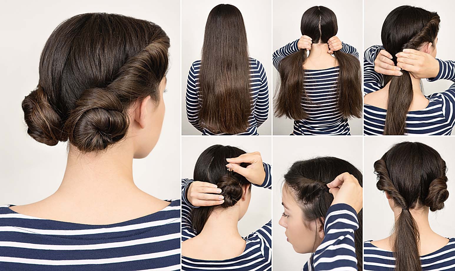 4. Уложи жгут баранкой в районе затылка, заколи со всех сторон шпильками.