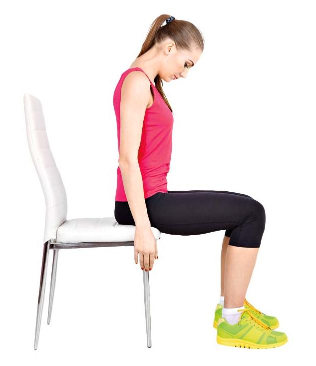 Присядь на край стула. Затем согнись, опустив верхнюю часть туловища на переднюю поверхность бедер. Расслабься, чтобы голова и руки свободно свисали вниз. Это простое упражнение помогает быстро снять напряжение с плечевого пояса, который при стрессе часто становится словно каменный.