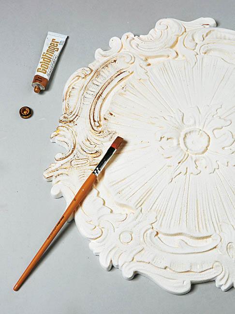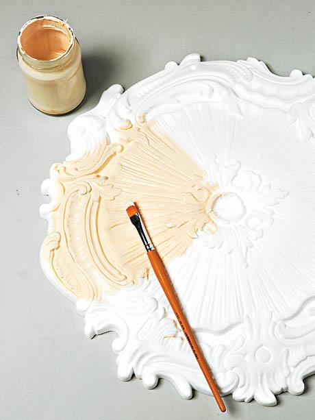 2. Когда основная краска высохнет, возьми другую кисть и нанеси золотую краску (пасту) на выступающие элементы. Снова оставь до полного высыхания.
