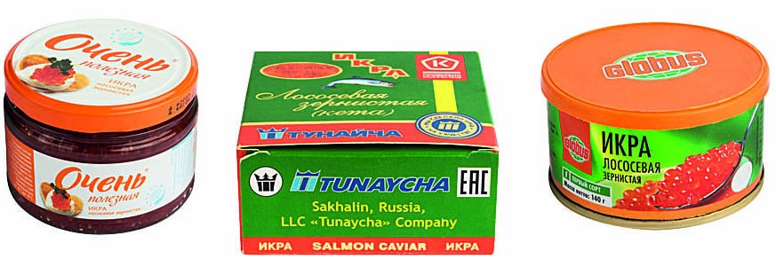 Самая вкусная и качественная красная икра российского производства: «Очень» (г. Санкт-Петербург), «Тунайча» (Сахалинская обл.), Globus (г. Санкт-Петербург).
