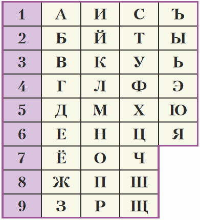 Воспользуйся специальной таблицей. Запиши свои имя, отчество и фамилию и отметь, какие цифры соответствуют каждой букве: