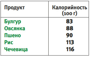 При приготовлении калорийность круп сильно снижается, поэтому на них построено немало диет. Они полезные и при этом очень сытные, так как содержат клетчатку и медленные углеводы. Также они очень благоприятно воздействуют на здоровье желудочно-кишечного тракта.