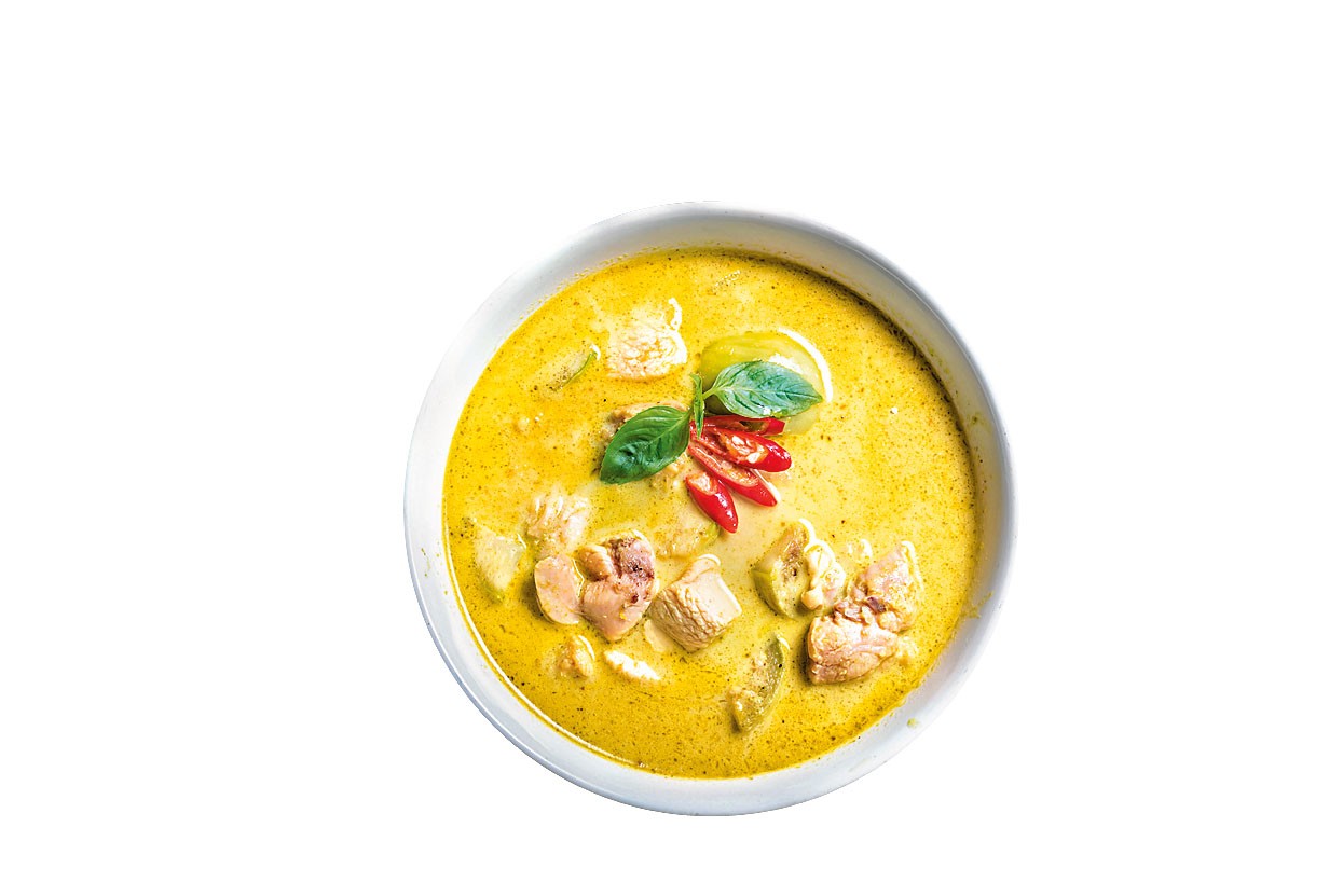 Ингредиенты: •куриная грудка (200 г) •морковь •репчатый лук •3 картофеля •70 г нежирных сливок •соль, перец •1 ч. л. карри